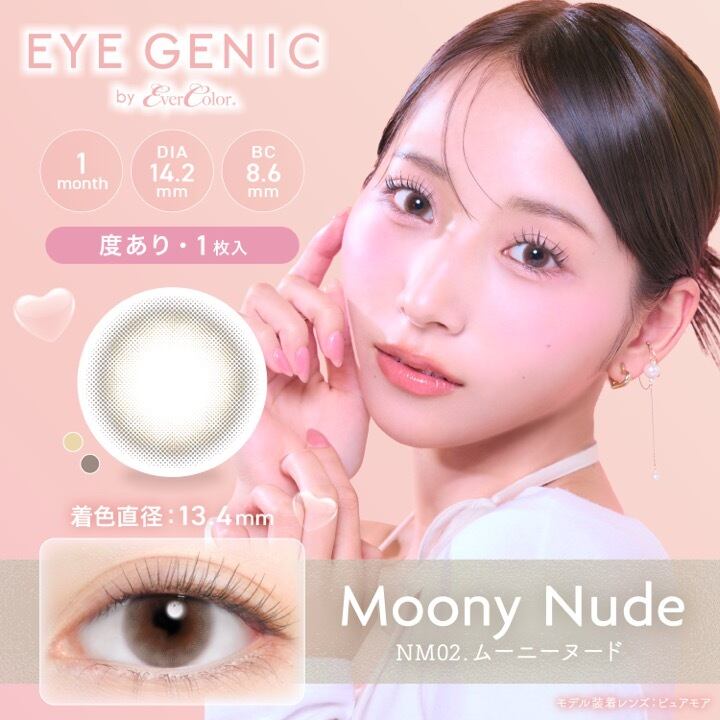 《ムーニーヌード》 “ふわっと、ゆらめきアッシュ” ふわふわとした淡色カラーで、夢みる気分に。 アッシュカラーとベージュが混ざり合うエモい発色。 イメージモデル:中野ゆいな 【ブランド名】エバーカラー 【販売名】アイジェニック 【内容】1箱1枚入り 【医療機器承認番号】22300BZX00162A45 【再使用可能な視力補正用色付コンタクトレンズ】 【使用期間】1ヶ月 【度数(PWR)】全25度数 【商品スペック】DIA 14.2mm/BC 8.6mm/含水率 38.5%/着色直径 13.4mm 【製造販売元】株式会社ANW 【販売元】株式会社アイセイ 使用上の注意 ●コンタクトレンズは高度管理医療機器です。眼科医にて診察を受け、指示を守ってください。 ●製品に添付されている添付文書をよく読み、正しい使い方を理解してからご使用ください。 ●装用スケジュールおよび装用時間を必ず守ってください。 ●正しい使用方法、ケア方法を順守してください。 ●目に異常を感じなくても、定期検査を必ず受診してください。 ●少しでも異常を感じたら、装用を中止し、すぐに眼科医の検査を受けてください。